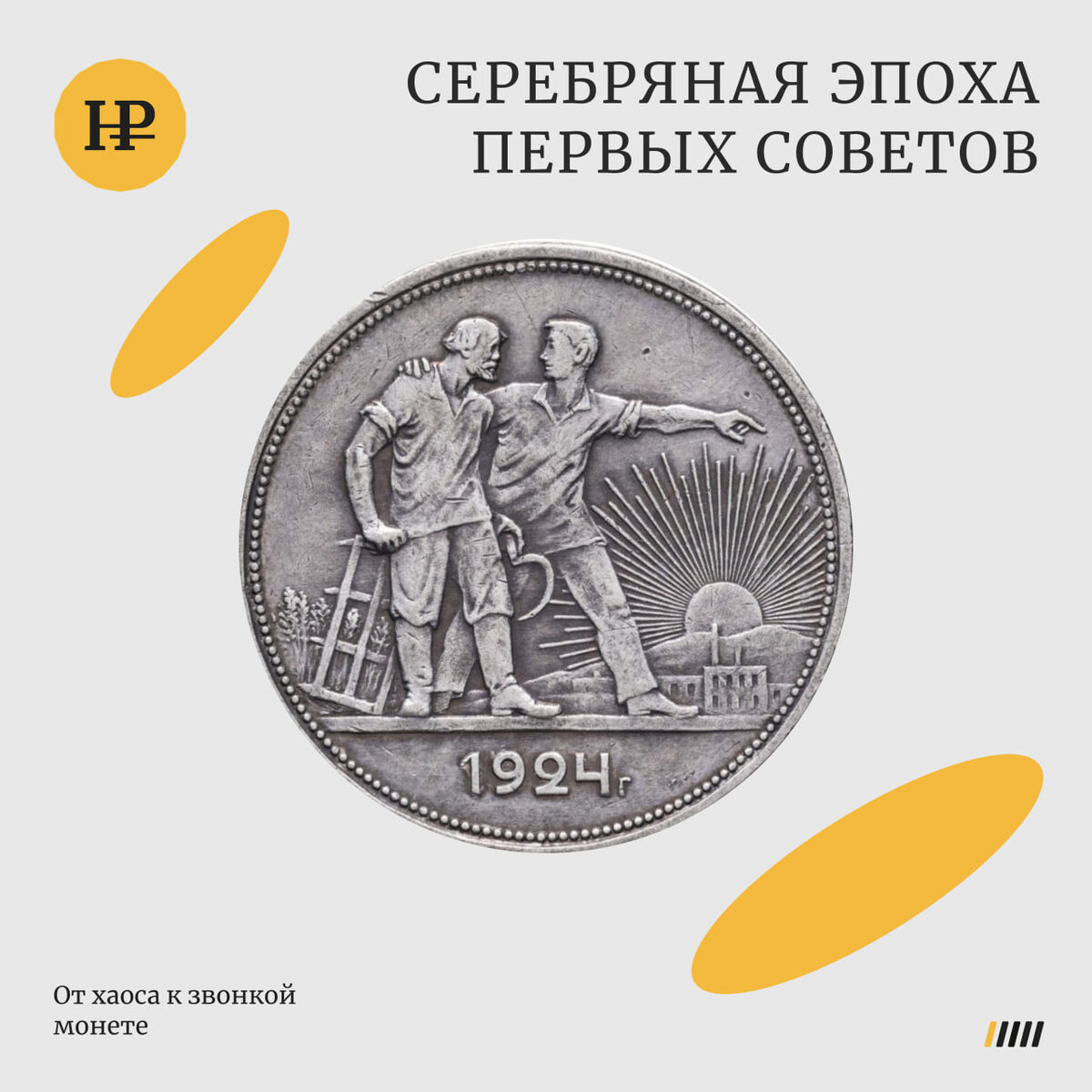 Первое десятилетие советской власти в нумизматике связано с возвращением металла в денежную систему. После экономического хаоса первых послереволюционных лет появление в 1921 году серебряной монеты стало одним из шагов к стабилизации денежного обращения, завершившейся реформой 1922–1924 годов. Эти выпуски особенно ценны тем, что новая власть сохранила имперские стандарты веса и пробы, воплотив их в совершенно иной художественной и идеологической форме. Монеты с датой «1921» — первые серебряные выпуски РСФСР после долгого перерыва. Чеканка возобновилась на Петроградском монетном дворе. Хотя тиражи исчислялись миллионами экземпляров, высокая сохранность сегодня встречается редко из-за активного обращения и переплавок. Рубли и полтинники 1921 года стали символом начала денежной стабилизации страны. После образования СССР дизайн монет приобрёл ярко выраженный идеологический характер. Рубль 1924 года с рабочим, указывающим крестьянину путь к восходящему солнцу, считается одним из самых выра
