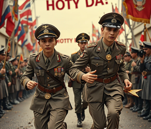И тут дед с товарищами не выдержали, они высунулись между вагонами и дружно захохотали, показали языки. Грозные дядьки обернулись, и 21-летние взводные, 22-летние ротные, и 23-летние комбаты, звеня орденами и медалями, со смехом разбежались и помчались искать свои эшелоны. Ищите ветра в поле.