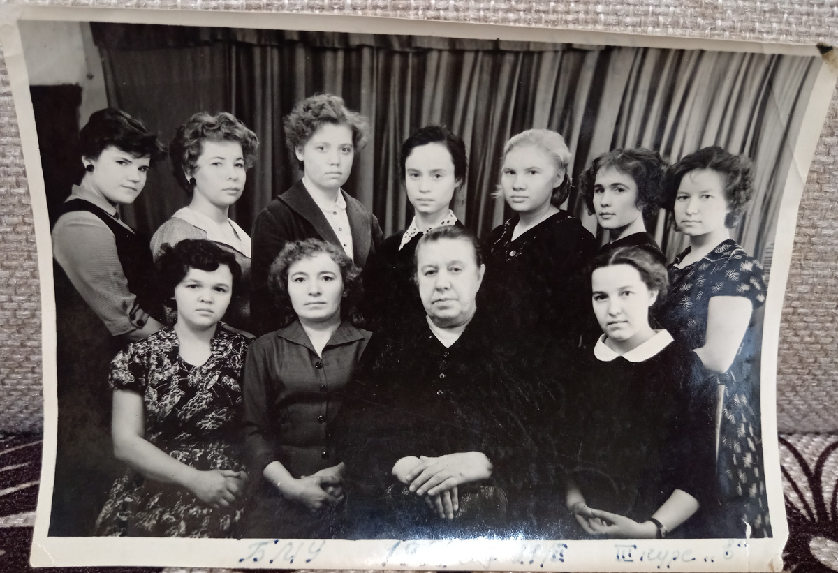 Рассматриваю фотографию группы студенток медучилища. Мама сидит по правую руку от преподавателя Марии Васильевны. Мария Васильевна можно сказать по-матерински относилась к любимой ученице. Знала, что ей очень тяжело. Приглашала к себе в гости. Усаживала за стол и настаивала, чтобы хорошо поела. Здесь мне вспоминается фильм "Уроки французского". Вот так и было как в фильме...