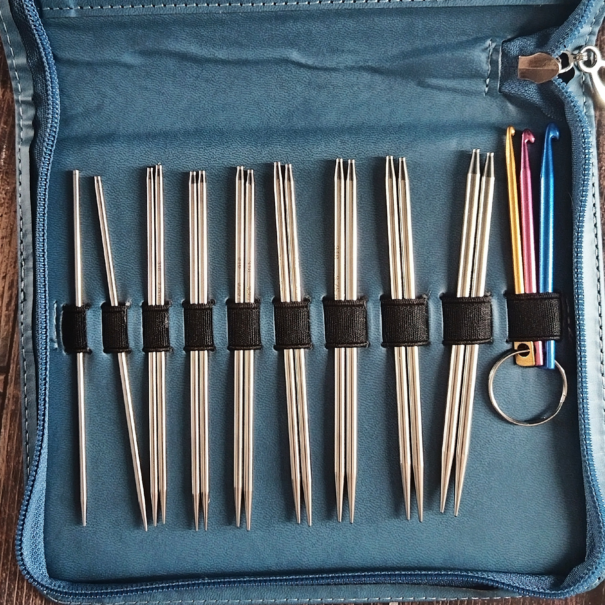 Есть наборы с тросиками разной жесткости - под разные техники. Есть с особым покрытием для скользких ниток. Есть со специальными заглушками, которые никогда не теряются.