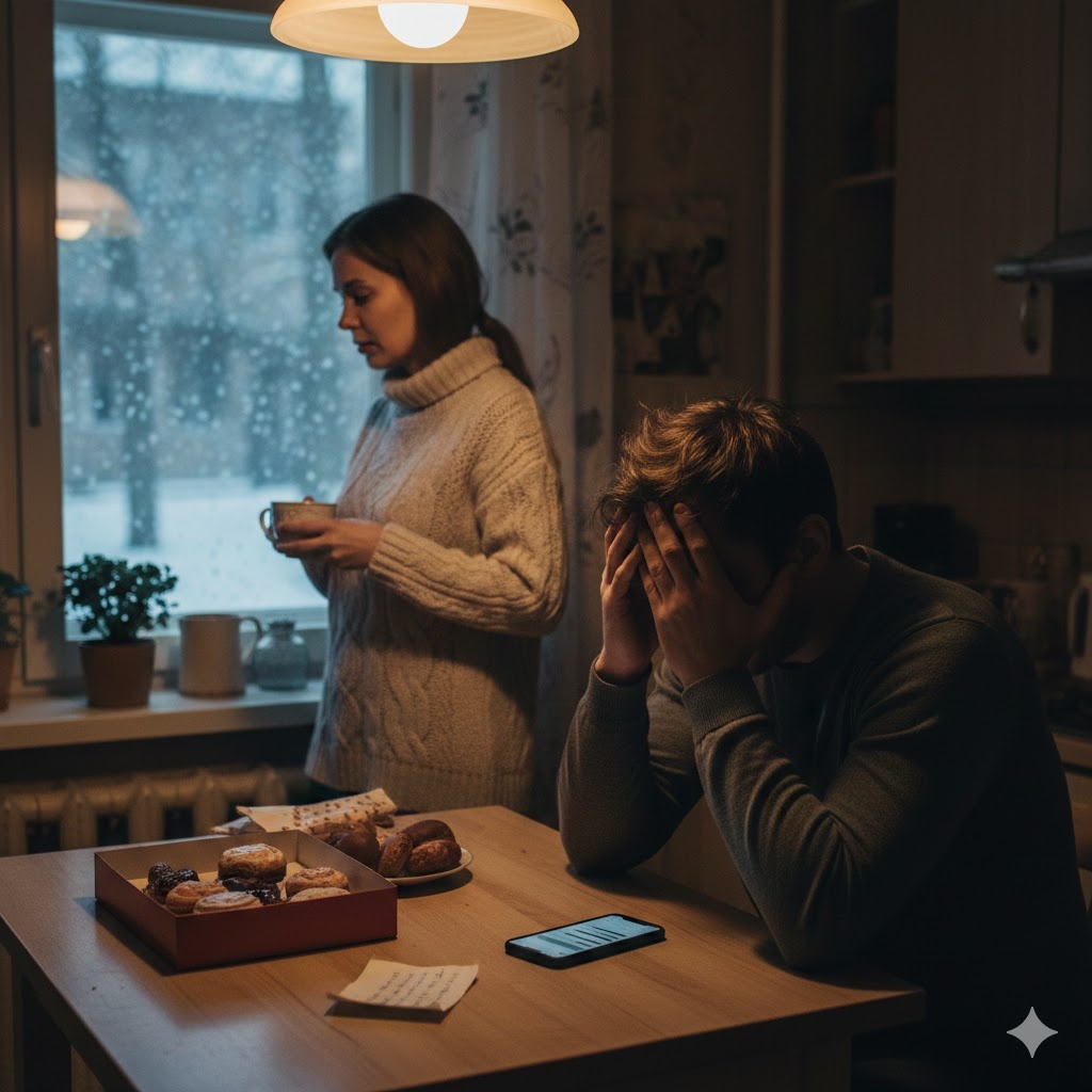 Андрей долго сидел в темноте кухни, когда Марина ушла в спальню. Он смотрел на коробку пирожных, которые теперь казались ему горькими на вкус. В эту ночь снег за окном заметал все пути назад, оставляя впереди только холодную, пугающую честность.