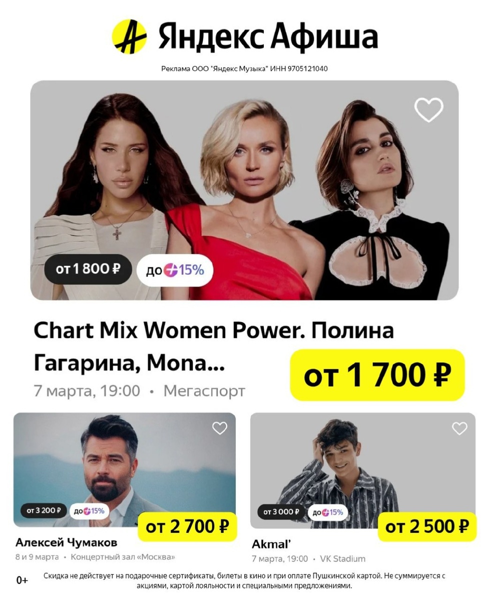 Рекомендуемые концерты на Яндекс Афише 👏🏻
