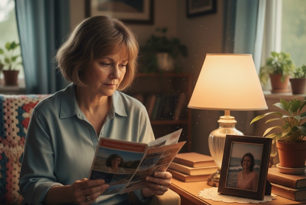Валентина встала. Медленно. Взяла буклеты со стола.