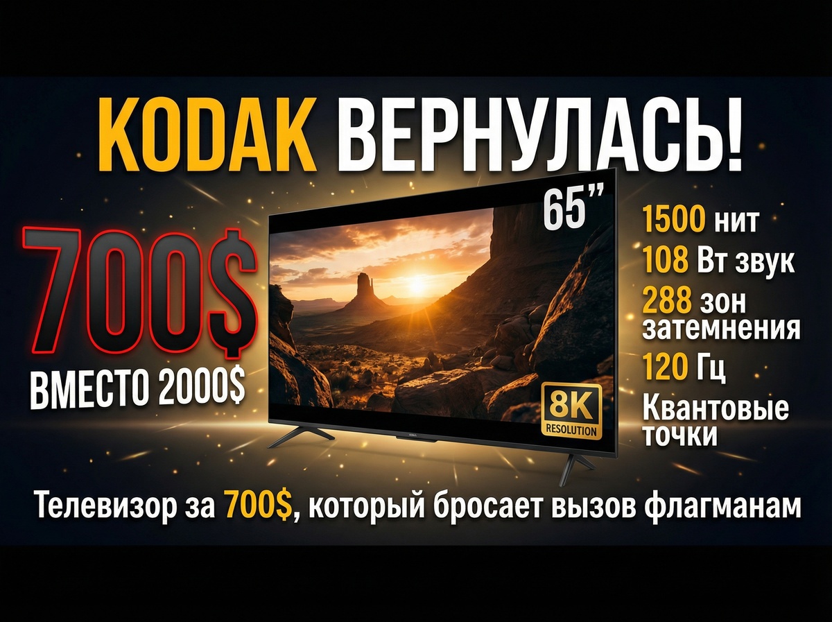 В Индии, на одном из крупнейших рынков потребительской электроники, тихо появилась новинка: Kodak IconiK 4K Mini QD. Никаких громких презентаций, никаких рекламных кампаний. Просто - вот он, на полке Amazon, за 57 999 рупий (примерно 700 долларов). И характеристики, от которых захватывает дух.