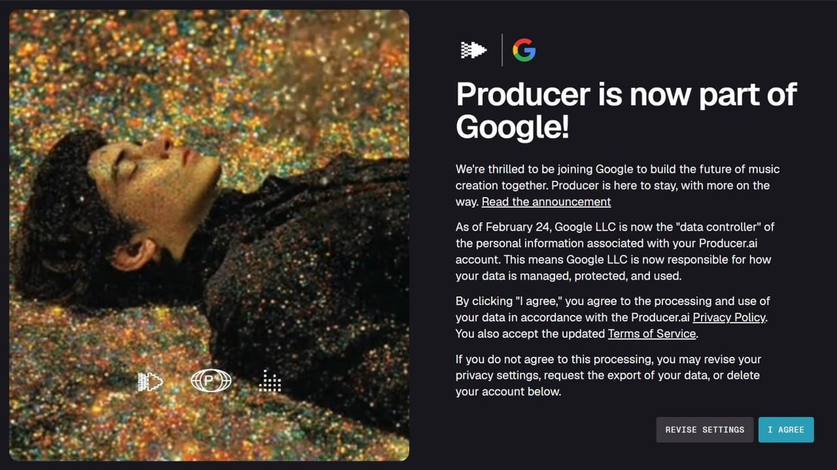 С сегодняшнего дня все данные на платформе принадлежат Google. У меня все предыдущие генерации удалены. После того как Suno поглотили WMG, а потом Udio пожёван UMG остаётся уповать только на китайскую братву. Либо кого-то нового, кто решится тренировать свои модели. Кстати занятно, что примерно почти сразу после поглощения Suno и Udio в сеть слили 86 млн песен из Spotify на 300 ТБ. Из приятного: на Producer добавили гугловский генератор музыки Lyria 3 в превью. На удивление на упоминание The Prodigy в промте не блочит запрос, хоть прямо и говорит, что не может скопировать стиль артиста (быть может всё не так плохо?). Старые модели Fuzz не доступны. Может выложат в опенсорс? По звуку Lyria пока на уровне Suno 4, особенно когда вступает голос. Хотя бы функционал с чатом, спейсами, и прочим оставили на месте. Посмотрим, что будет дальше. Сайт Твит