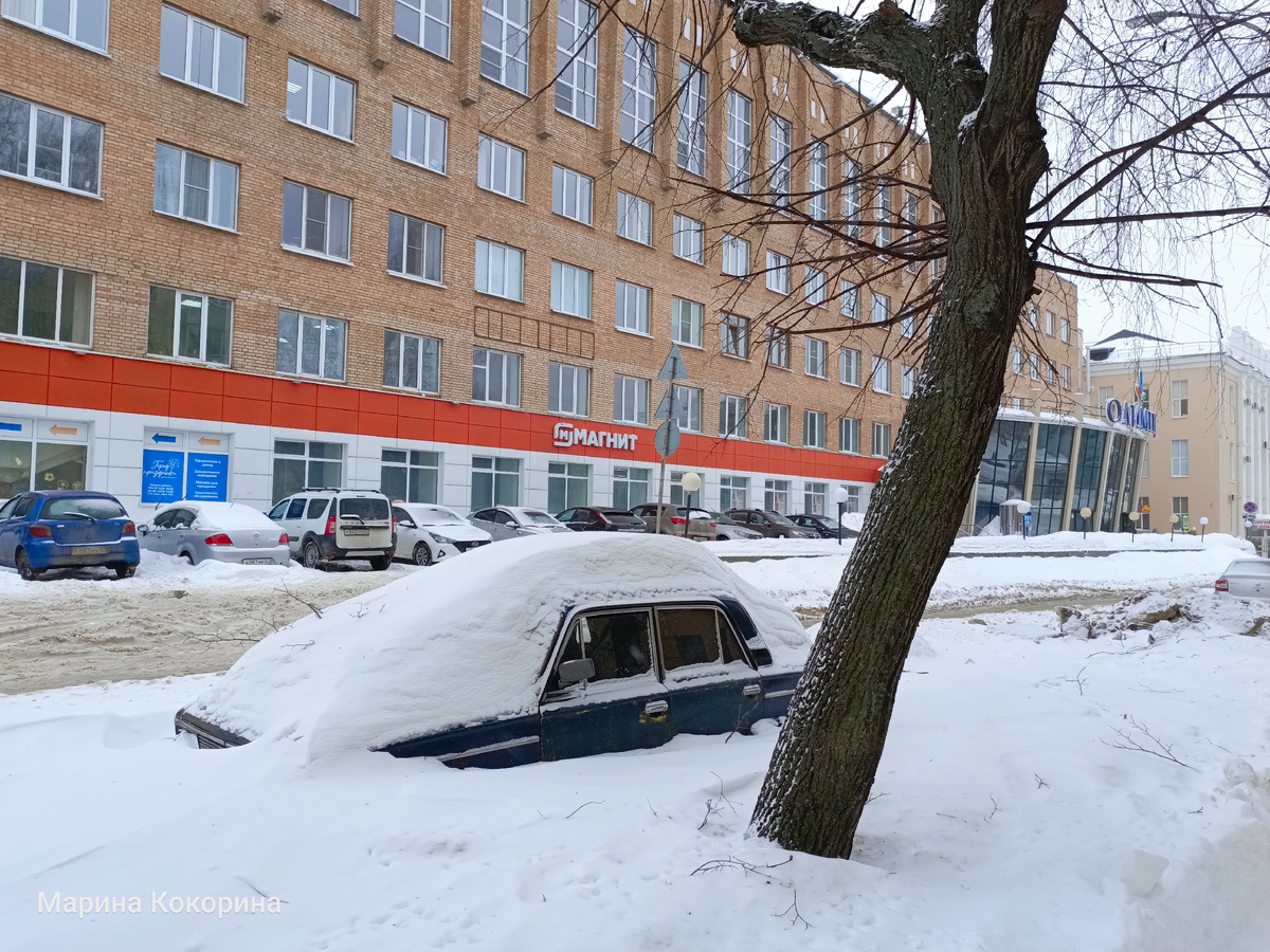Всем привет! Сегодня будет необычный пост. Без красивых фотографий и восторженных од «как у нас все прекрасно». Сегодня мы просто пойдем гулять. Потому что у меня выходной, а сидеть дома в такой день - преступление против самого себя. Февраль в этом году - настоящая женщина с характером. То приласкает солнцем, заставит сосульки звенеть и намекнет: «Весна уже близко, рукой подать». То вдруг разозлится, нагонит туч, завьюжит так, что света белого не видно. Сегодня, 24 февраля, случился второй вариант: пасмурно, небо нахмурилось, и сыплет мелкая, противная снежная крупа. Но гулять-то надо! Обуваем непромокаемое и идем месить нашу рязанскую кашу. Начали мы наш маршрут с тихой улицы Затинной. И сразу поняли масштаб бедствия. Машины тут стоят не припаркованные, а словно законсервированные на зиму. По самую крышу их заботливо укутало снегом. Кто-то, видимо, решил не мучиться и оставил авто до апреля. Дальше - к сердцу города. Прошли недалеко от Кремля. Знаете, даже дышится по-другому, когда