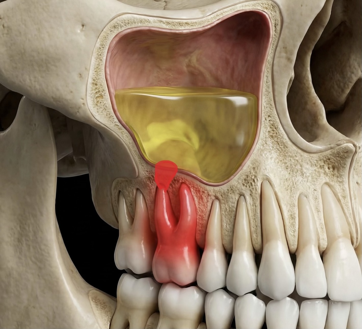Зубы верхней челюсти корнями уходят глубоко в ткани и