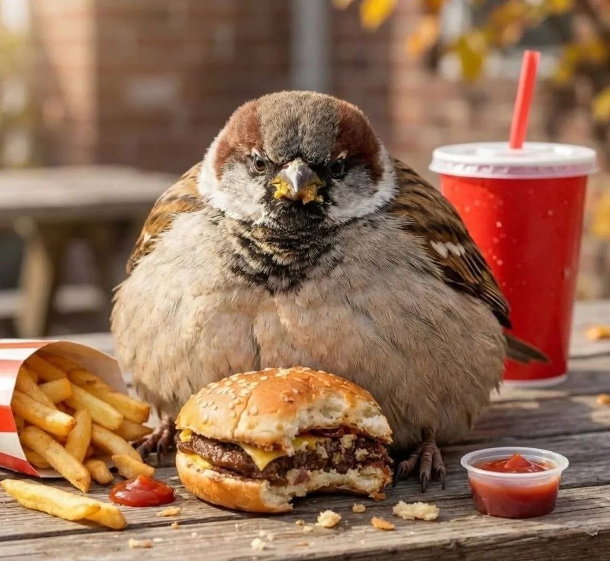 ?!? О ВРЕМЕНА! О НРАВЫ! Воробьи в российских городах растолстели из-за фастфуда — к такому выводу пришли учёные из РАН. Птицы больше не ищут корм, а «пасутся» у точек быстрого питания и спокойно переваривают быстрые углеводы. Из сети https://max.ru/id2372001505_gos https://ok.ru/group/70000041523919 https://vk.com/public212083585 https://dzen.ru/id/660af8bc3bd95d5b99e56429 - подпишись на СВОй "Рассвет".