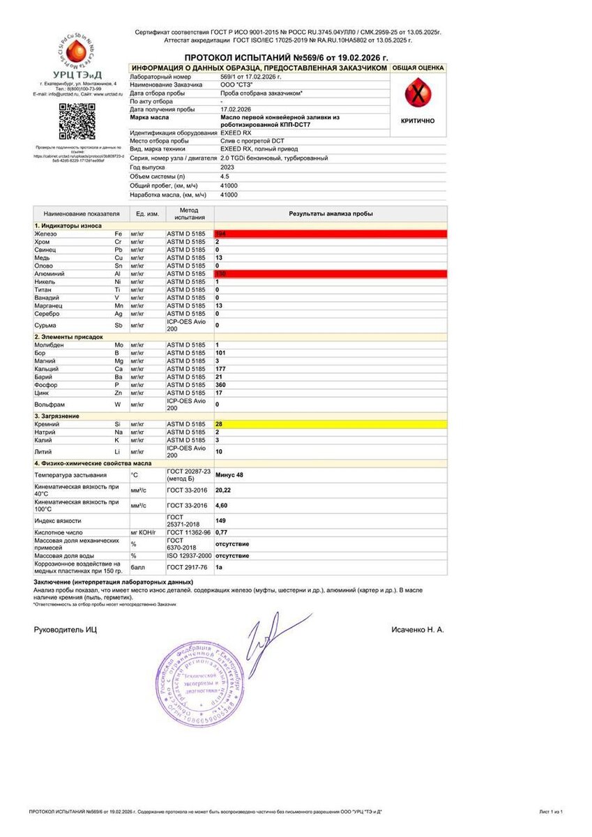Неплановая замена трансмиссионной жидкости на китайском Exeed RX спасла коробку от износа Ранее мы показывали слив трансмиссионной жидкости с Эксида. На 41 000 км пробега жидкость была почерневшей и имела запах уже отработавшей свой ресурс. Отработка была направлена на анализ в аккредитованную лабораторию, которая, в свою очередь, подтвердила диагноз, поставив оценку - «критично». В самой трансмиссионке была выявлена чрезмерная концентрация железа, алюминия и кремния, что действительно может критично влиять на износ сложного узла и значительно сократить дистанцию до ремонта КПП (робота). #exeed #ArmActiv #ZeroMileage #STZ #СТЗ #АрмАктив #робот