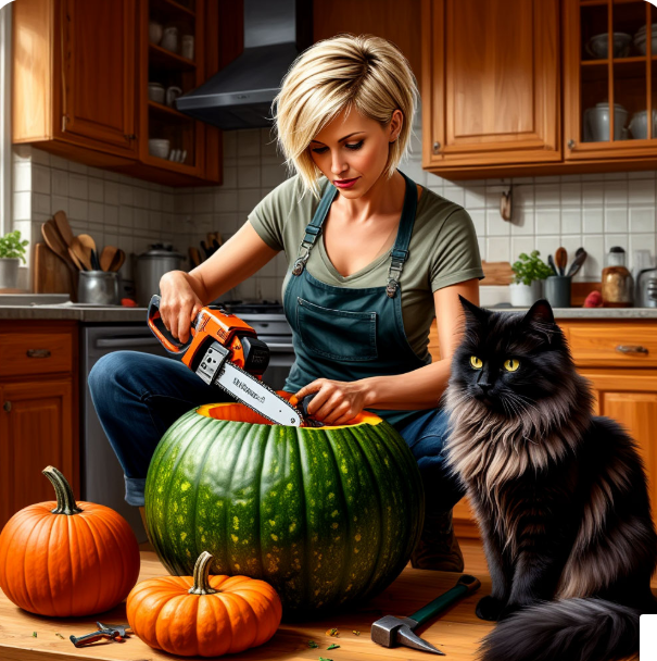 Вчера на нашем ТГ канале я хвасталась фотографиями аппетитных оладушек из тыквы. Конечно тут же созрела дискуссия кто и как эту самую тыкву использует. Много фотографий прикрепили читатели. (ссылка на ТГ канал) Но я не рассказала как именно я эти оладьи готовила. Точнее, про приготовление и рассказывать нечего. Эка невидаль! Шлёп тесто на сковородку и жарь себе - не хочу. Вся загвоздка была в тыкве. Тыкв в прошлом сезоне у меня выросло много. Мой любимый тонкокожий сладкий сорт «розовый банан» улетел первым. Потом за ним пошла «папайя», «тромбон», еще какая-то ... А вот напоследок остались две здоровых оранжевых красавицы и одна тёмно-зеленая. Плоская, как летающая тарелка. Называлась она "мускатная". Вот эту тарелку я и решила превратить в оладьи. Помыла я эту заразу. Разложила на разделочной доске и попробовала разрезать напополам ножом. Фиг вам! Нож соскользнул с зеленого бока как с мраморной статуи. Тогда я взяла тесак для резки мяса. Резать тыкву он категорически не желал. А при