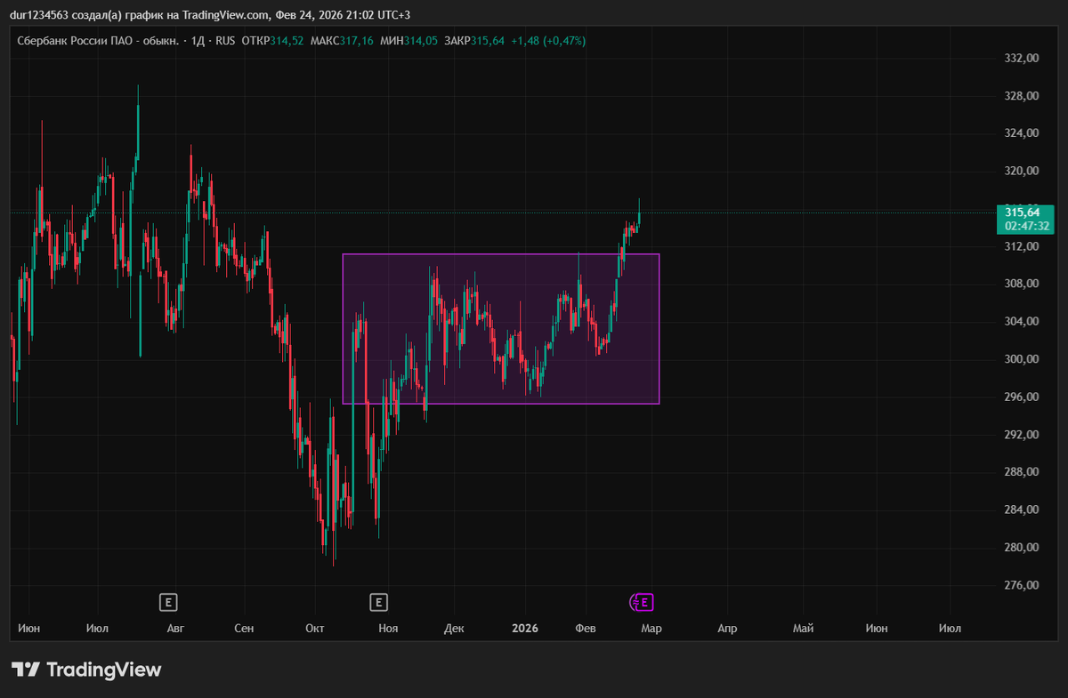 Важное уведомление: Данный материал носит информационно-аналитический характер и не является индивидуальной инвестиционной рекомендацией. Все решения принимаются инвестором самостоятельно с учётом риск-профиля. 10 февраля Сбербанк опубликовал сокращённую отчётность по российским стандартам бухгалтерского учёта. Чистая прибыль за январь 2026 года составила 161,7 млрд руб., что на +21,7% год к году выше показателя января 2025 года. Рентабельность капитала (ROE) достигла 23,2%, что подтверждает эффективность операционной модели банка даже в условиях высокой ключевой ставки. 24 февраля руководство Сбербанка выступило с предложением рассмотреть налоговые льготы для поддержки российских разработок в области искусственного интеллекта. Данная инициатива укрепляет позиции Сбера как технологического лидера в финансовом секторе, создаёт предпосылки для долгосрочного снижения налоговой нагрузки на R&D-направления и повышает инвестиционную привлекательность в глазах ESG-ориентированных инвесторов.