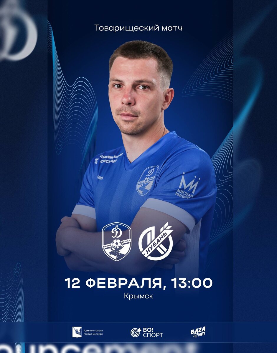 Соперник — ПФК «Кубань». Футбольный клуб «Динамо» (Вологда) выражает благодарность краснодарскому клубу за организацию трансляции игры. Ссылка на прямой эфир появится в день матча 💙 @dynamovologda