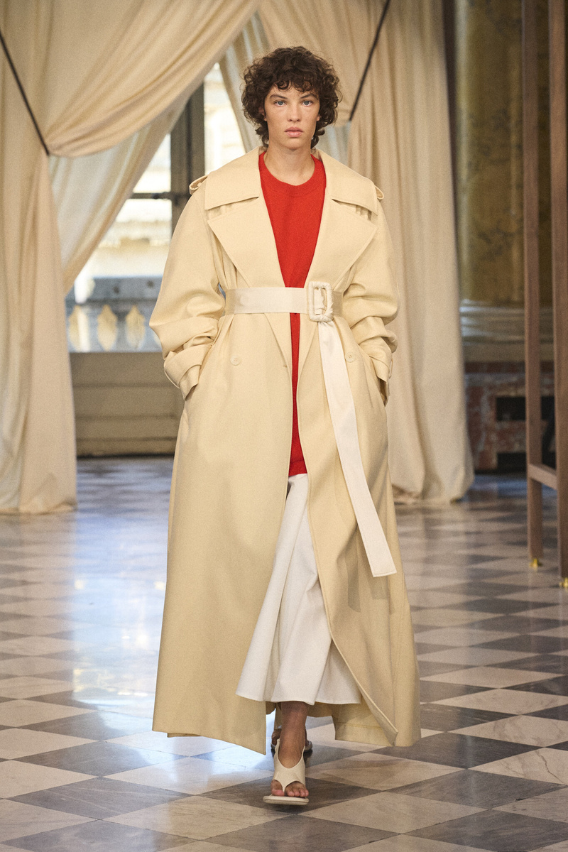 Мы привыкли, что устойчивая мода — это что-то спокойное, почти незаметное: бежевый, лен, минимум формы. Но показ Icicle Atelier весна–лето 2026 приятно ломает этот стереотип. Коллекция выстроена на мягкой, природной палитре. Нежный небесно-голубой, пыльно-серый, теплый молочный и песочный оттенки создают ощущение света и воздуха. Появляется глубокий коричневый и лаконичный черный — спокойные, взрослые акценты. И вдруг — сочный красный, который звучит смело и современно. Вся гамма не кричит, а дышит, оставляя много пространства и движения. Главная идея — философия «не выбрасывай, не желай». Но она не звучит назидательно. Это видно в материалах: хлопковый поплин, лен, шелковый креп, фирменная парусина из смеси шелка и шерсти. Используется и традиционный шелк Гамби, окрашенный естественными способами. Здесь устойчивость — это не модное слово, а реальный подход. Силуэты свободные и удобные: легкие пыльники, туники, миди-юбки, полупрозрачные шелковые слои. Интересный момент — прямоугольные