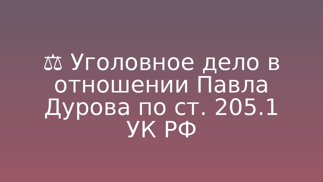 1.1 ст. 205.1 УК РФ (содействие террористической деятельности) в отношении его действий. «Российская газета» и «Комсомольская правда» со ссылкой на материалы ФСБ и МВД писали, что действия Дурова расследуются в рамках этого состава, а с 2022 года Telegram связывают со 153 тыс. преступлений, из них 33 тыс. — диверсионно‑террористической и экстремистской направленности; среди упомянутых эпизодов — теракт в «Крокус Сити Холле». Пресс‑секретарь президента Дмитрий Песков заявил о «целесообразных мерах» в связи с нежеланием администрации Telegram сотрудничать с российскими властями. Дуров в своём канале связал преследование с попыткой «подавить право на частную жизнь и свободу слова».