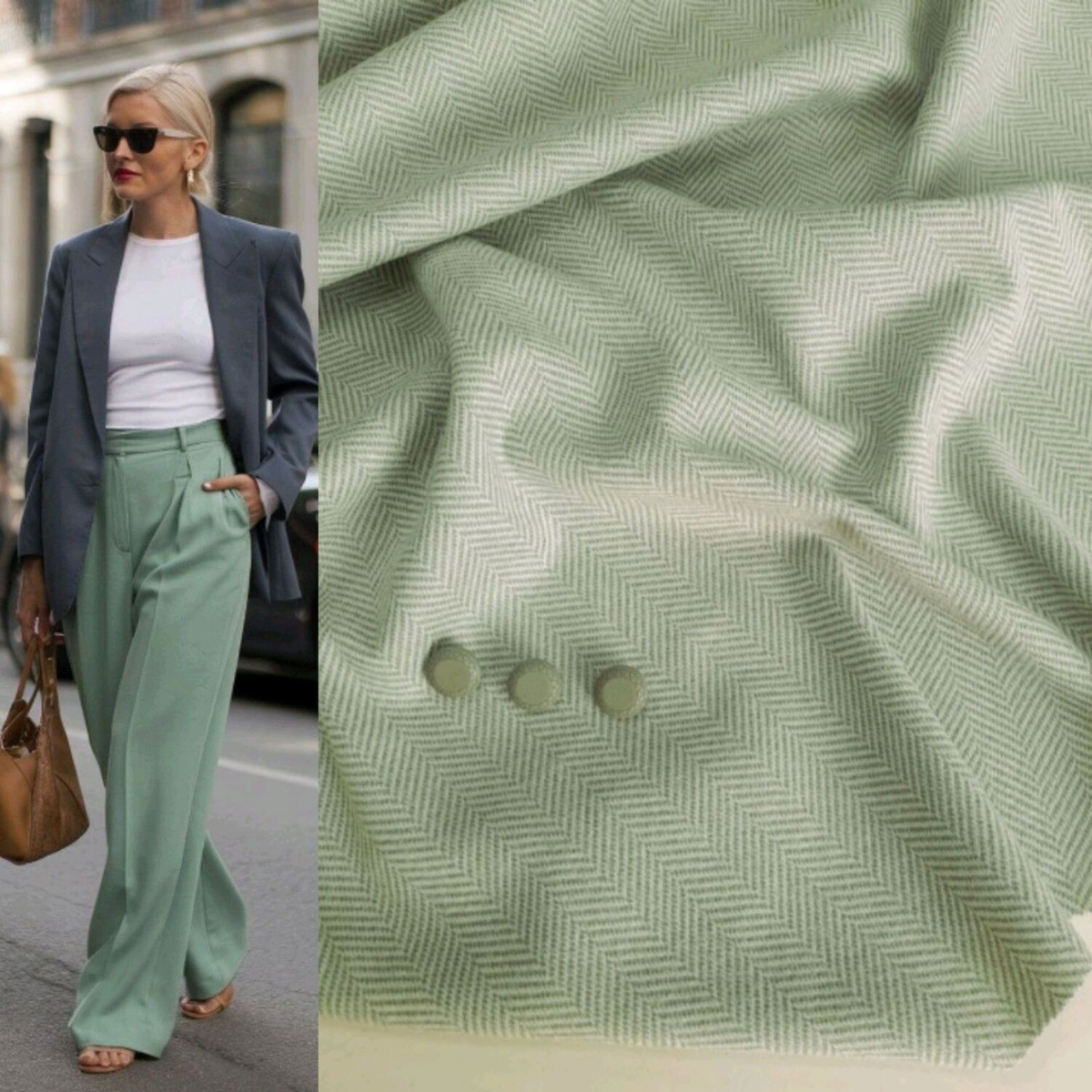 Твид-трикотаж в ёлочку: Два оттенка элегантности – "Мята" и "Сирень"