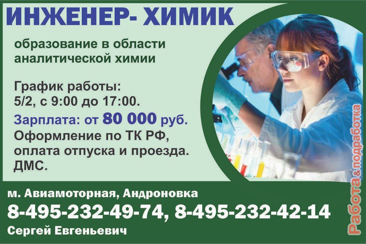 !🔥 🔧Почему стоит выбрать нас: - Высокий доход от 80 000 рублей — достойная оплата вашего таланта и усилий. - Официальное трудоустройство и полный соцпакет — заботимся о вашем будущем и настоящем. - Удобный график работы: 5/2, с 9:00 до 17:00 — больше времени на отдых и личные дела. - Доступные офисы в центральных районах Москвы: Нижегородская, Андроновка, Авиамоторная — легко добраться! 📌Что мы ожидаем от вас: - Образование в области аналитической химии — будем рады вашим знаниям и навыкам. - Опыт работы приветствуется — ценим ваш предыдущий опыт и достижения. - Уверенные навыки работы с ПК (MS Office, Outlook, AutoCAD) — вы владеете инструментами, которые позволят вам быть эффективнее. 📞Свяжитесь с нами: +7 (495) 232-49-74, +7 (495) 232-42-14 (Сергей Евгеньевич) 🚀Присоединяйтесь к команде профессионалов и создайте будущее вместе с нами! Работа&Подработка «То, что кажется невозможным с первого взгляда, достигается привычкой.» — Марк Аврелий