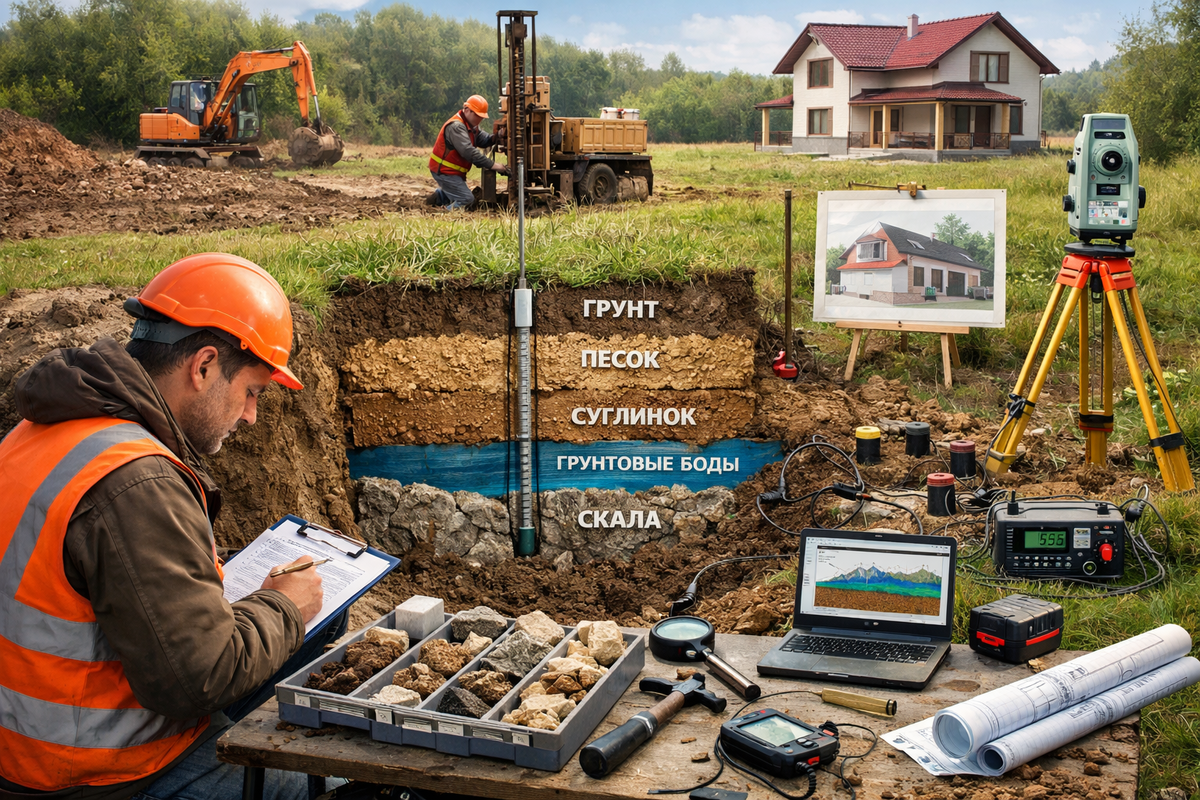 Вы купили участок и мечтаете о собственном доме? Поздравляю! Но прежде чем заказывать проект и копать котлован, сделайте паузу. Самая частая и дорогостоящая ошибка частных застройщиков — строительство без геологических изысканий . Многие считают: «Зачем платить геологам? Сосед вон построил дом на ленточном фундаменте — и у меня так же будет». Но грунт — это слоеный пирог, и даже на двух соседних участках он может кардинально различаться . Давайте разберемся, зачем нужна геология участка и как она помогает сэкономить миллионы. 🔍 Что такое геология участка? Инженерно-геологические изыскания — это комплекс работ по изучению грунтов, рельефа и подземных вод на вашем участке . Специалисты бурят скважины (обычно 2-4 на участок), отбирают пробы грунта и воды, изучают их в лаборатории и выдают заключение с рекомендациями по фундаменту . 🏠 Зачем нужна геология под строительство частного дома? Вот 5 главных причин, почему нельзя строить без геологии: 1. Правильный выбор фундамента