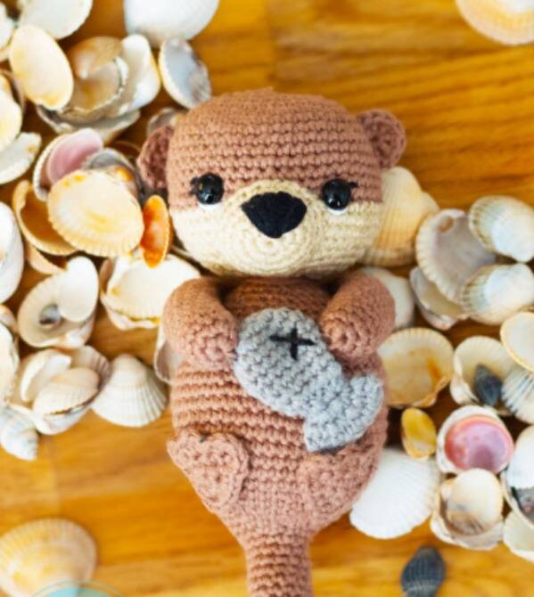 Выдра держит рыбку в лапках. Получается милая игрушка или брелок на ключи. Вяжется из хлопковой пряжи крючком 2 мм. Голова с телом, отдельно лапки, ушки, нос. Рыбка простая, с плоским хвостиком. Схема короткая, быстро вяжется. Материалы Пряжа хлопковая 8/4 Крючок для вязания 2,0 мм Безопасные глазки Игла Маркер петель Ножницы Сокращения вп – цепочка мр – волшебное кольцо сбн – столбик без накида сн – столбик с накидом соед. ст – соединительная петля приб – прибавка убавка – убавка псн – полустолбик с накидом Голова 1 мр, 6 сбн в кольцо (6) 2 (приб) x6 (12) 3 (сбн, приб) x6 (18)4 (сбн, приб, сбн) x6 (24) 5 (3 сбн, приб) x6 (30) 6 (2 сбн, приб, 2 сбн) x6 (36) 7 (5 сбн, приб) x6 (42) 8 (3 сбн, приб, 3 сбн) x6 (48) 9-14 сбн (48) 15 (7 сбн, приб) (54) смена цвета. 16-18 сбн (54) 19 (7 сбн, уб) x6 (48) 20 (3 сбн, уб, 3 сбн) x6 (42) 21 (5 сбн, уб) x6 (36) 22 (2 сбн, уб, 2 сбн) x6 (30) 23 (3 сбн, уб) x6 (24) 24 (сбн, уб, сбн) x6 (18) 25 (сбн, уб) x6 (12) Ноги х 2 1 Начните с цепочки 2 2 Во вто