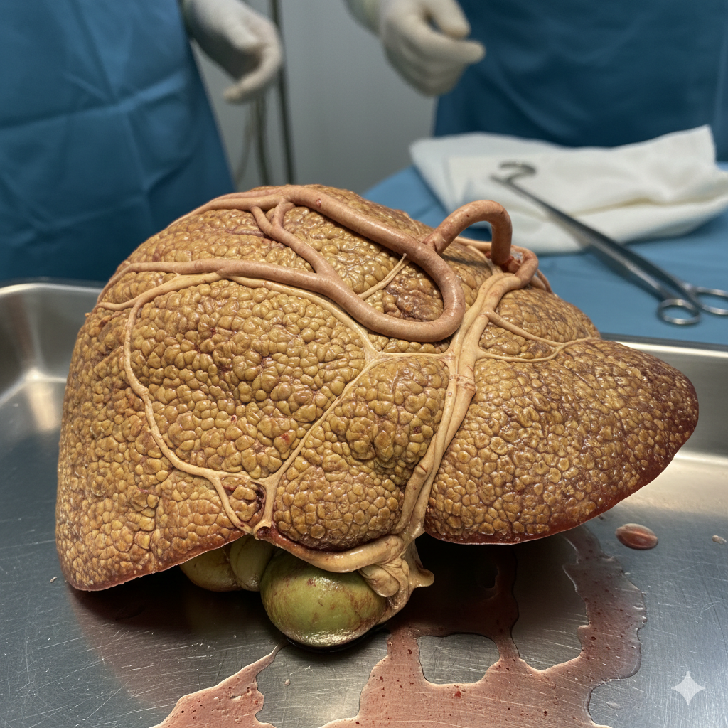 · Когда наступает: Через 5–15 лет регулярного употребления. Печень покрывается рубцами, перестает выполнять функции.