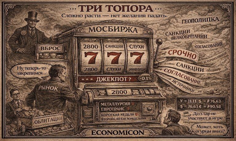 Сегодня только порадовался, что рынок достиг уровня в 2800, первая мысль, осталось только закрепиться, как геополитика опять внесла свои коррективы. Кто-то запустил слух, что идет согласование по передачи ядерки одному очень невменяемому государству и на этом рынок пошел вниз, попутно растеряв весь свой позитив еще и на новых санкциях от Великобритании. Такое впечатление, что кто-то при достижении определенного рынком уровня сидит и рисует негативные новости. Индекс сегодня закончил тремя топорами, 2777 пунктов по индексу, потеряв 0,1%. В лидерах падения металлургия и бумаги Евротранса, которому сейчас уделено очень много внимания. Не стоит забывать, что данная неделя короткая, всё не могу привыкнуть, что сегодня вторник, а не понедельник, но это не значит, что неделя не будет богата на события. С начала года уже прошло два месяца, а доллар всё еще не хочет идти в рост, аналитики не знают, что делать в данной ситуации. Томас Курз на на 25 февраля: ¥ - ₽11,11, $ - ₽76,63, € - ₽90,58