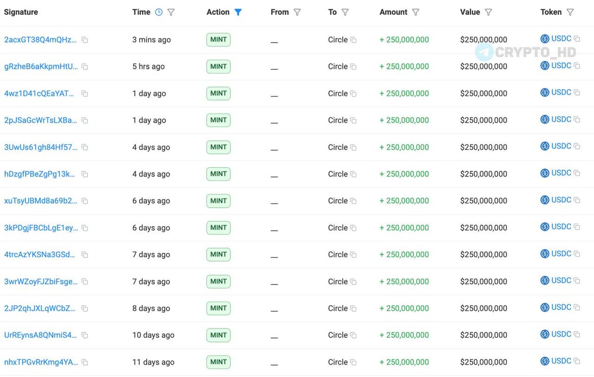 🤔 Solscan: Компания Circle напечатала #USDC на $2,500,000,000 за последнюю неделю