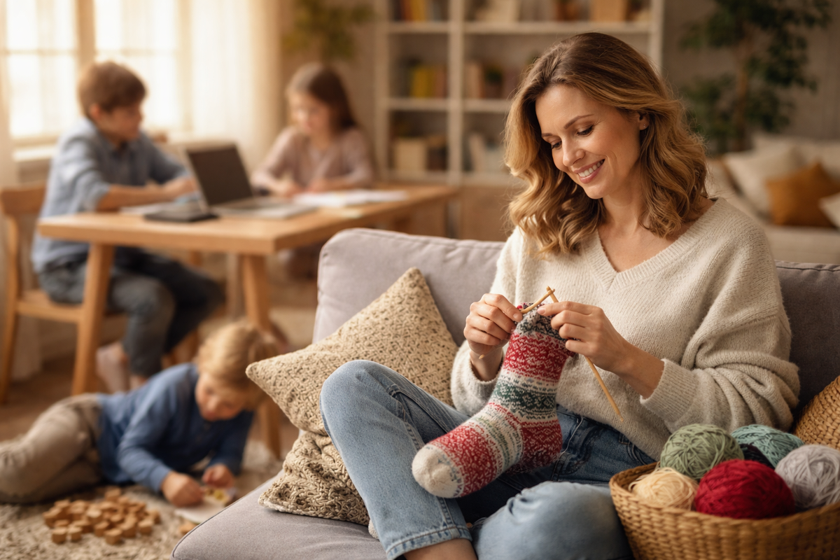 Подруга выложила фото в Телеграмм — вязаные носки с узором. Авторская работа, ручная, красота. В комментариях: — И когда ты только успеваешь? У меня один ребёнок — и я еле живая. А у неё — четверо. Четверо детей. Одна. Без мужа. Она работает. Занимается фотографией. Вяжет. Развивает творческий канал. И знаете, что самое интересное? Её дети не выглядят обделёнными. Наоборот — они самостоятельные, весёлые, живые. Потому что мама показывает им: жизнь — это не только обязанности. Это ещё и творчество. Интерес. Развитие. И вот я смотрю на эти носки и думаю: почему мы до сих пор верим, что хорошая мать должна забыть о себе? «Я тебе всю жизнь отдала» — откуда эта установка? Наши бабушки растили по 3-9 детей. И как-то не говорили про «жертву». Потому что жизнь была другая. Дети — это было естественно. Как работа в огороде, стирка, готовка. Никто не романтизировал материнство до «высшего предназначения». А сейчас? Сейчас материнство превратили в культ. «Настоящая мать живёт только детьми». «Есл