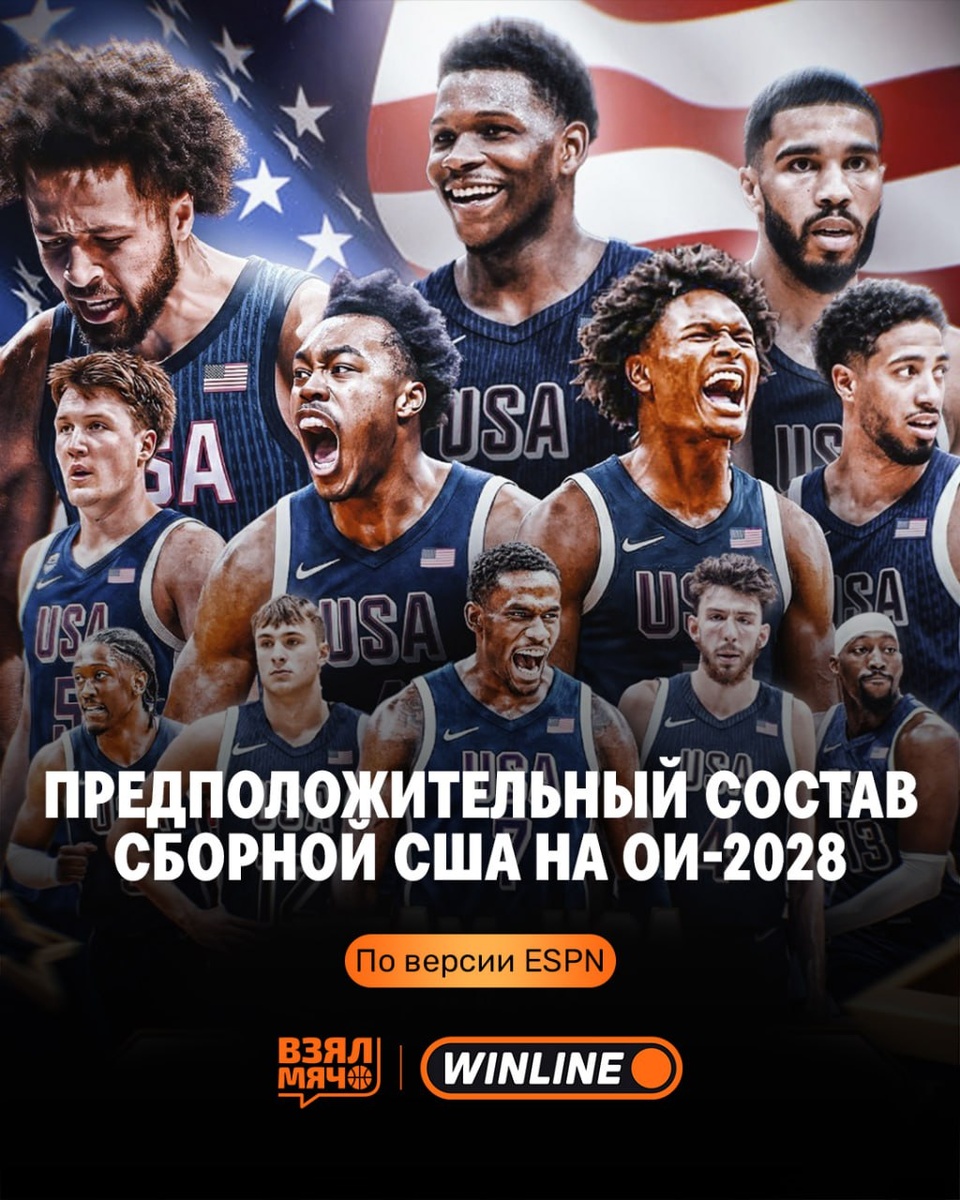 ? ESPN представил свою версию состава сборной США на 2028 год: 🔸 Кейд Каннингем 🔸 Энтони Эдвардс 🔸 Джейсон Тейтум 🔸 Кон Книппел 🔸 Скотти Барнс 🔸 Амен Томпсон 🔸 Тайриз Халибёртон 🔸 Джейлен Уильямс 🔸 Купер Флэгг 🔸 Джейлен Дюрен 🔸 Чет Холмгрен 🔸 Бэм Адебайо По слухам, Кевин Дюрант и Стефен Карри изъявили желание принять участие в ОИ-2028. Кого бы вы добавили или убрали? 🤔 🏀 ПОДПИШИСЬ — ЗДЕСЬ ЖИВЁТ БАСКЕТБОЛ!