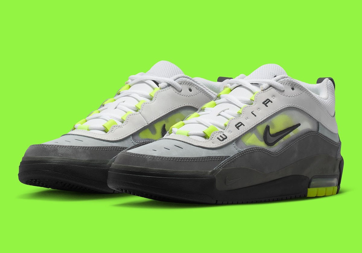 Nike продолжают празднование «Air Max Month» в марте, выпуская несколько моделей в «Neon» расцветке. Помимо возвращения Air Max 95 «Neon», бренд адаптирует эту гамму для других моделей, включая Nike SB Air Max Ishod. Эта модель станет единственным скейт-кроссовком с Air Max в рамках мероприятия 5 марта. Верх выполнен из замши и кожи с градиентным серым покрытием и яркими желто-зелеными акцентами на шнурках, Air-подушке и фиксирующей конструкции под сетчатым верхом. Хотя точная дата релиза не анонсирована, ожидается, что все модели в «Neon» расцветке поступят в продажу 5 марта.