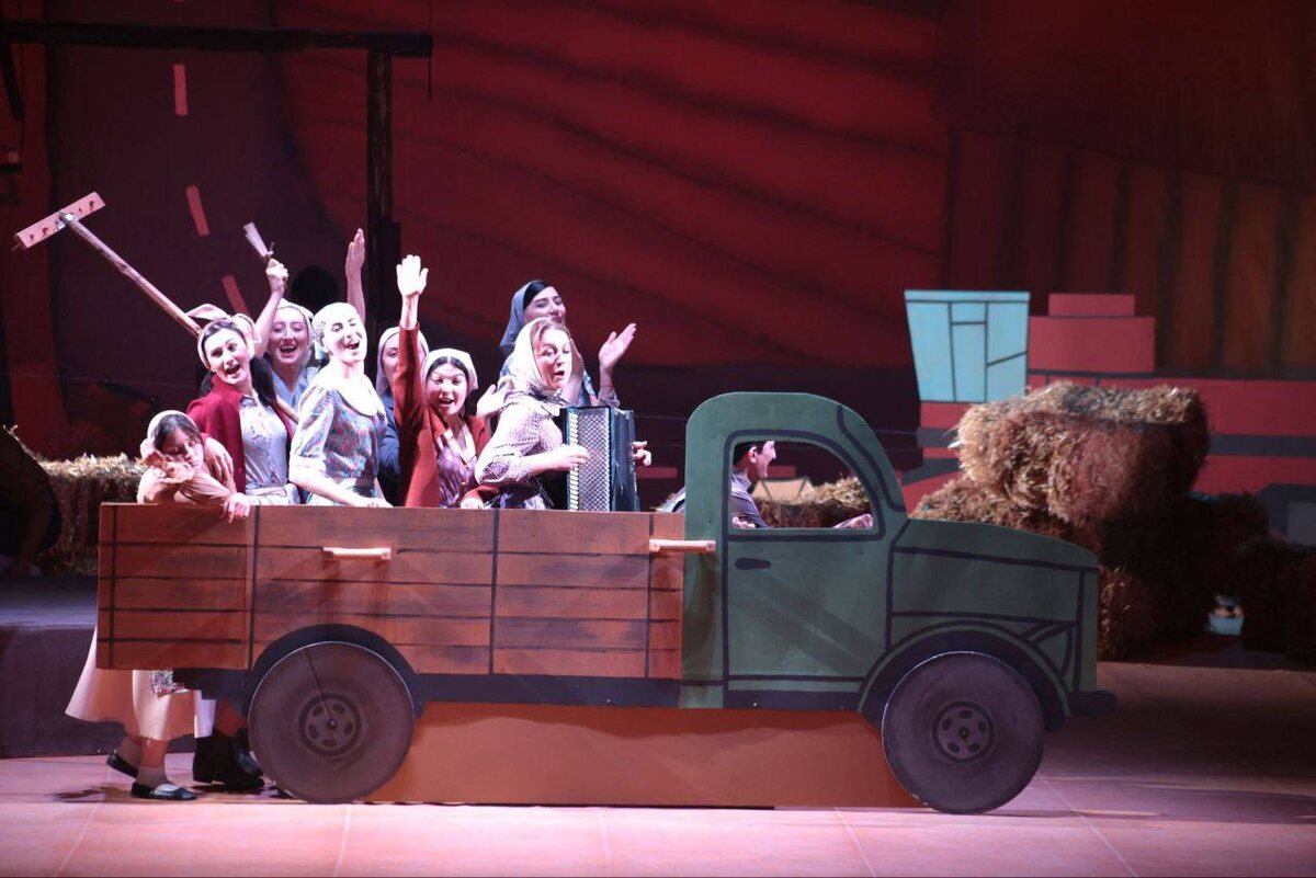 В. Тхапсаева возродили комедию «Две свадьбы» по пьесе Николая Саламова и Зарифы Бритаевой. Ранее эта постановка входила в репертуар театра более 15 лет назад. Впервые же спектакль был показан на сцене Осетинского театра в апреле 1956 года. Сегодня в роли режиссера выступает народный артист РСО-Алания Александр Битаров. В зале аншлаг, на сцене развернулись осенние поля, а актеры уже перевоплотились в роли своих персонажей. И вот, мы становимся свидетелями истории, повествующей о дочерях семьи Галау. Старшая Уарзета — своевольная и упрямая, младшая — Ацырухс мечтает поступить в институт. У Ацырухс уже есть тайный поклонник — молодой учитель Коста, которого Уарзета прогоняет из дома. Но и сердце старшей сестры вот-вот забьется в ускоренном ритме. После продолжительных аплодисментов и поклона в холле Осетинского театра состоялась вторая встреча театрального клуба «Открытая сцена», где все желающие смогли напрямую задать свои вопросы создателям и актерам спектакля «Две свадьбы». С гостями