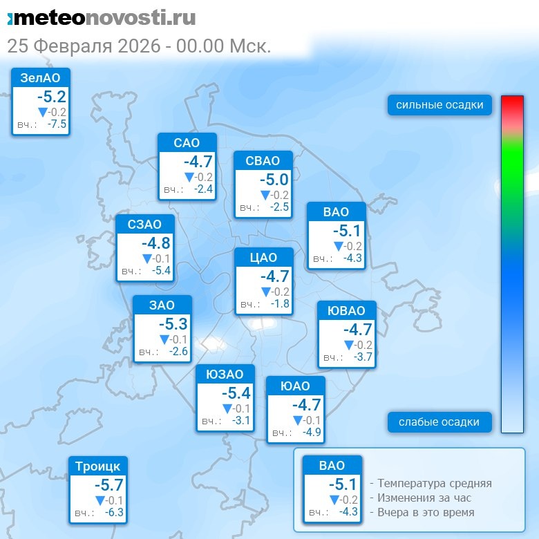 В 0:00 в Москве было от -5.9°C до -3.5°C, средняя температура -4.9°C #погода #Москва #зима #температура #25февраля #среда