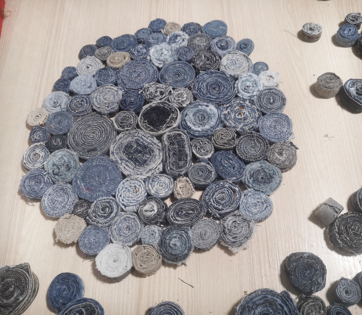 На фото более тёмная зона - это джинсовые скрутки из швов карманов, их получилось почти столько же, сколько было в готовом коврике
