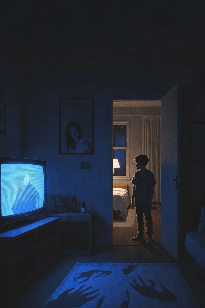 Родители наши отправились в гости, оставив нас одних в квартире. За окном царил зимний вечер января месяца, ранняя тьма окутывала город своим густым покрывалом, ветер свистел жалобно, словно кто-то затаился там, невидимый, готовый прошептать нам страшную тайну. Мы устроились в гостиной перед мерцающим экраном телевизора, увлечённые очередным сериалом. Но я вскоре вспомнил о какой-то важной вещице, оставленной в моей комнате, и отправился туда за ней. Идти пришлось через весь коридор, оставляя Мишу с оживлёнными героями экрана. Не успел я переступить порог своей комнаты, как странное чувство овладело мною. Я замер, дыхание застряло в груди, сердце учащённо забилось, будто предчувствуя нечто жуткое... И вдруг увидел... Вся моя уютная детская была полна неясных теней, густых и неподвижных, заполняющих пространство до самого потолка. Они висели плотной массой, п