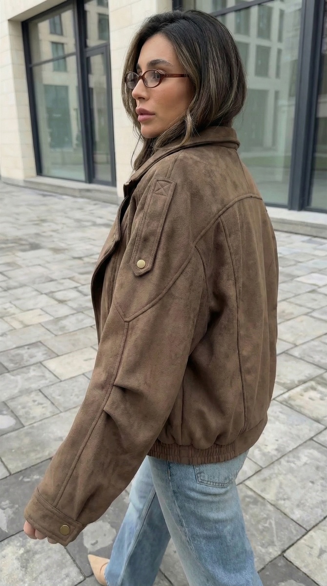 Есть вещи, которые просто заполняют пространство в шкафу. А есть те, что становятся любимыми, те, к которым рука тянется сама, когда за окном серая весенняя погода, а на душе хочется уюта и красоты. Коричневый замшевый бомбер из новой коллекции — именно такая вещь. Сегодня говорим о нём подробно, с любовью и вниманием к деталям.
