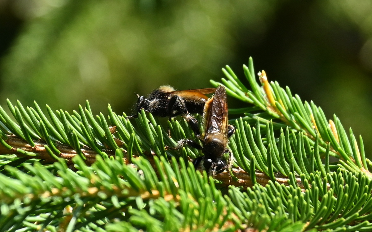 Семейство Ктыри (Asilidae) — среднего размера или крупные хищные мухи, характеризующиеся вытянутой формой тела, крупными глазами и коротким, но прочным хоботком, которым ктырь прокалывает и высасывает свою жертву. Ктырь На репейнике лиловом, Озирая свой пустырь, Гладит лапы перед ловом Крепкогрудый хищный ктырь. Черноглазый, узкобрюхий, Крылья звонкие чисты,- Он бросается на муху По-сокольи, с высоты. Жжик! - добыча наземь сбита. Обхватил её, зажал, И вонзает деловито Хобот острый, как кинжал... И опять на красной шапке Высоченного цветка Он сидит и гладит лапки: - Ну, насытился пока!.. Стихотворение Л.Б. Стекольникова из книги «Что такое аскалафус?» В Ленинградской области водятся три крупных вида ктырей и ряд мелких. Про первые два я уже писал: статьи про горбатого и рыжего ктыря: Вот ещё пара рыжих ктырей в Петяярви у дороги К-261 17.07.25 Фото А.М. Третий вид — шершневидный ктырь (Asilus crabroniformis). Занесён в Красную книгу Ленинградской области. Обитает на лугах, связан с ме