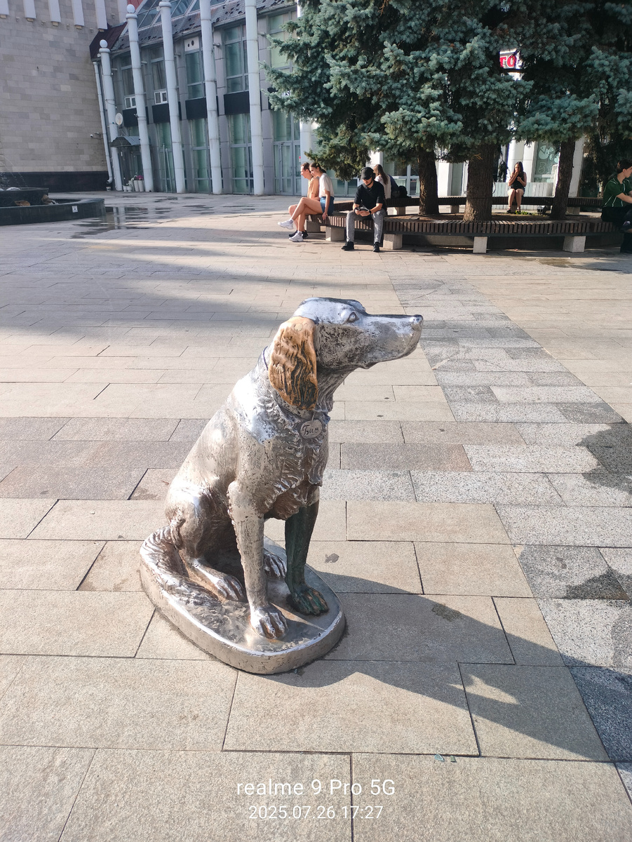 Чем же столь знаменит этот памятник? А это дорогие мои, памятник Биму. Если честно, то книгу о нём я прочла примерно в первом-втором классе, и смутно помню сюжет, но, я надеюсь, здесь есть культурные люди, которые объяснят мне ценность этой статуи то для мировой культуры? А то эта долбоящерица Императрица уже задолбала сим шедевром. А ну как, Воронежская Таша не знает ни о существовании рынка, ни собачки.