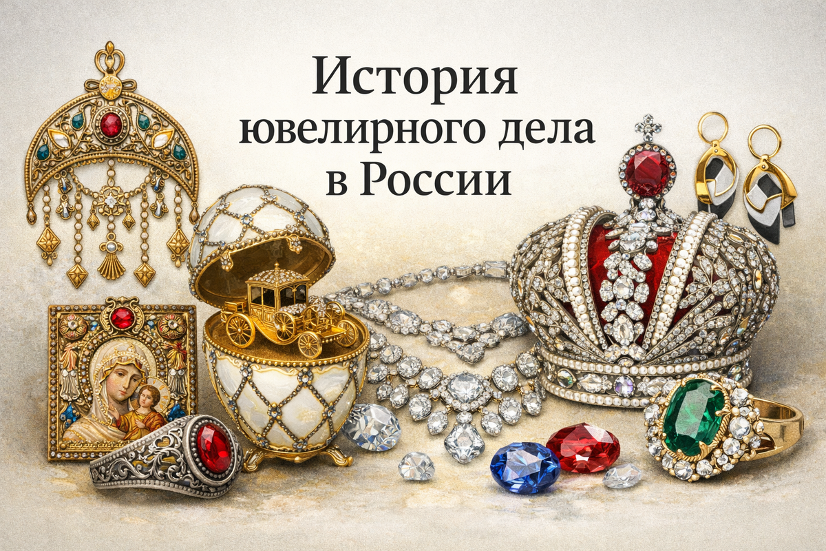 Ювелирное искусство в России — это многовековая традиция, вобравшая в себя влияние Византии, Востока и Европы. От древнерусских украшений до изделий императорских мастерских и современных брендов — развитие ювелирного дела отражает историю страны, её культуру и вкусы разных эпох. Первые ювелирные изделия на территории Древней Руси датируются IX–X веками. Уже тогда мастера владели сложными техниками: Популярными украшениями были колты, височные кольца, перстни, гривны. После принятия христианства в 988 году усилилось византийское влияние: появились кресты, иконы в окладах, богато украшенные церковные предметы. В XV–XVII веках центром ювелирного искусства стала Москва. При царском дворе действовали мастерские Оружейной палаты. Изделия отличались пышностью и обилием декора. Особенности периода: Ювелирные изделия становились символом статуса и власти. С реформами Петра I Россия открылась Европе. В страну приглашались иностранные мастера, формировались новые стили — барокко и классицизм. В