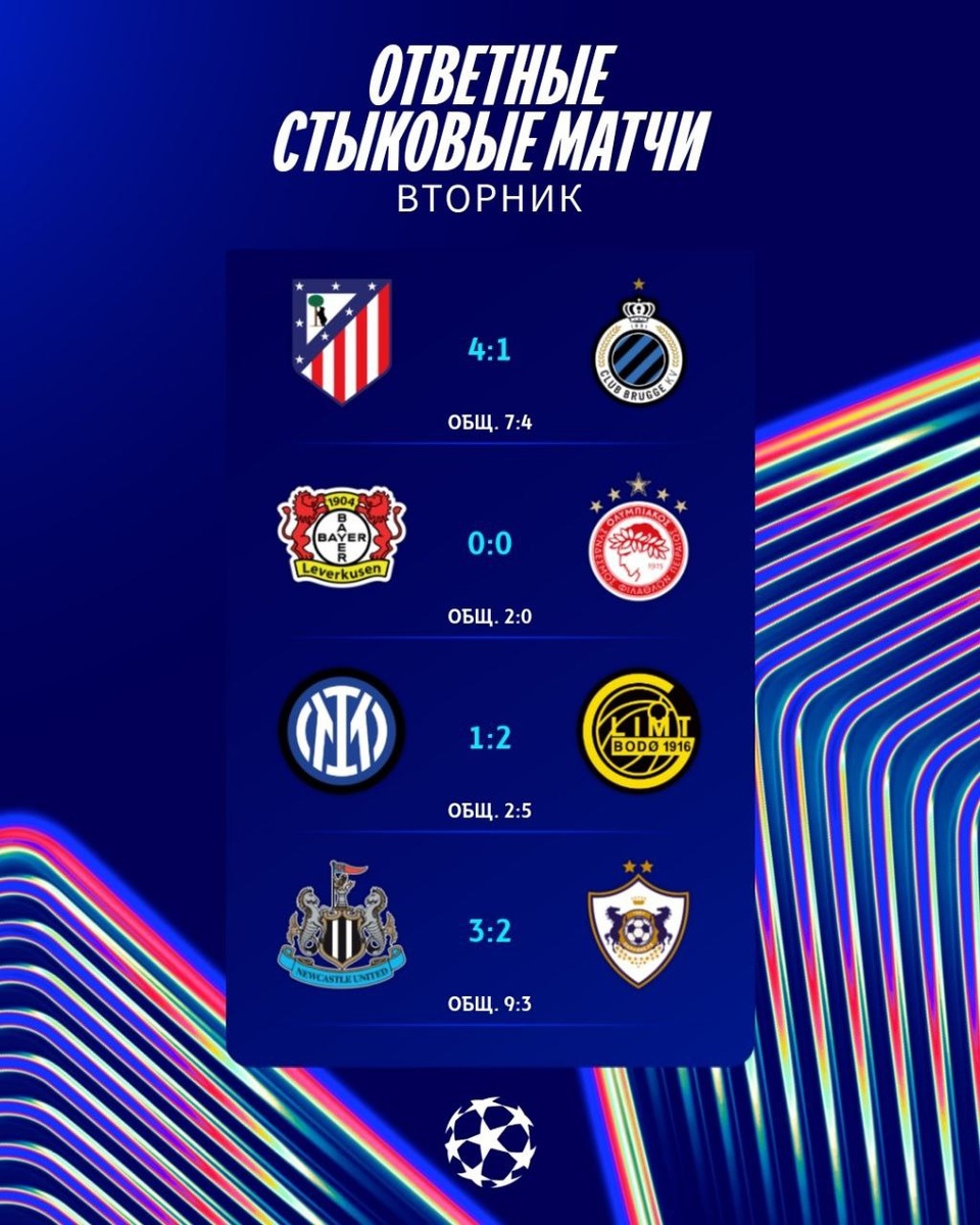 Уверенная победа в Мадриде от Атлетико, дежурный результат Байера, чарующий Буде и Ньюкасл с Карабахом, которые все решили в первом матче. Результаты вторника.