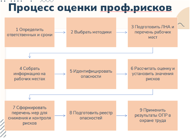 - Внутренние процедуры компании. Нормативы по идентификации опасностей, ведению реестра рисков, планированию профилактических мер.