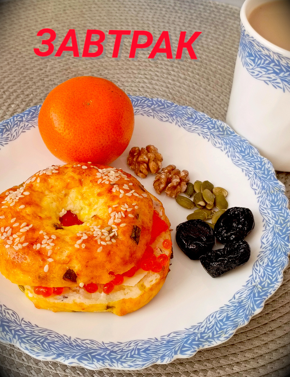 Утренний ритуал сегодня был особенно приятным. Вчерашние бейглы, которых получилось целых три, продолжают радовать. Один уже был опробован на полднике, второй же стал звездой сегодняшнего завтрака. Судьба третьего пока остается загадкой, но он точно не останется без внимания.