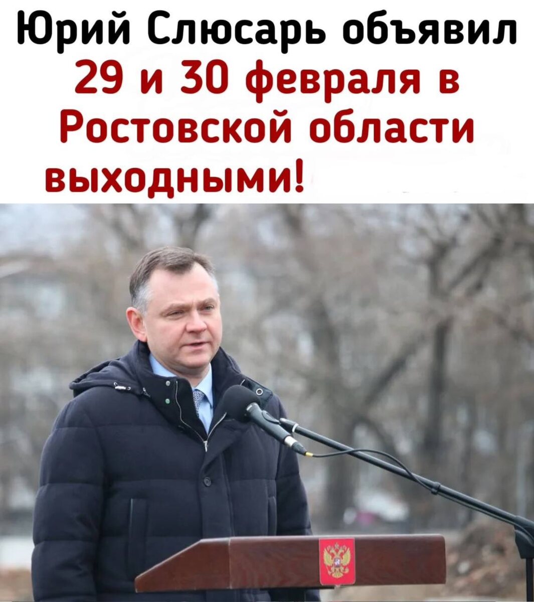 🗓️ Губернатор Слюсарь сделал 29 и 30 февраля выходными