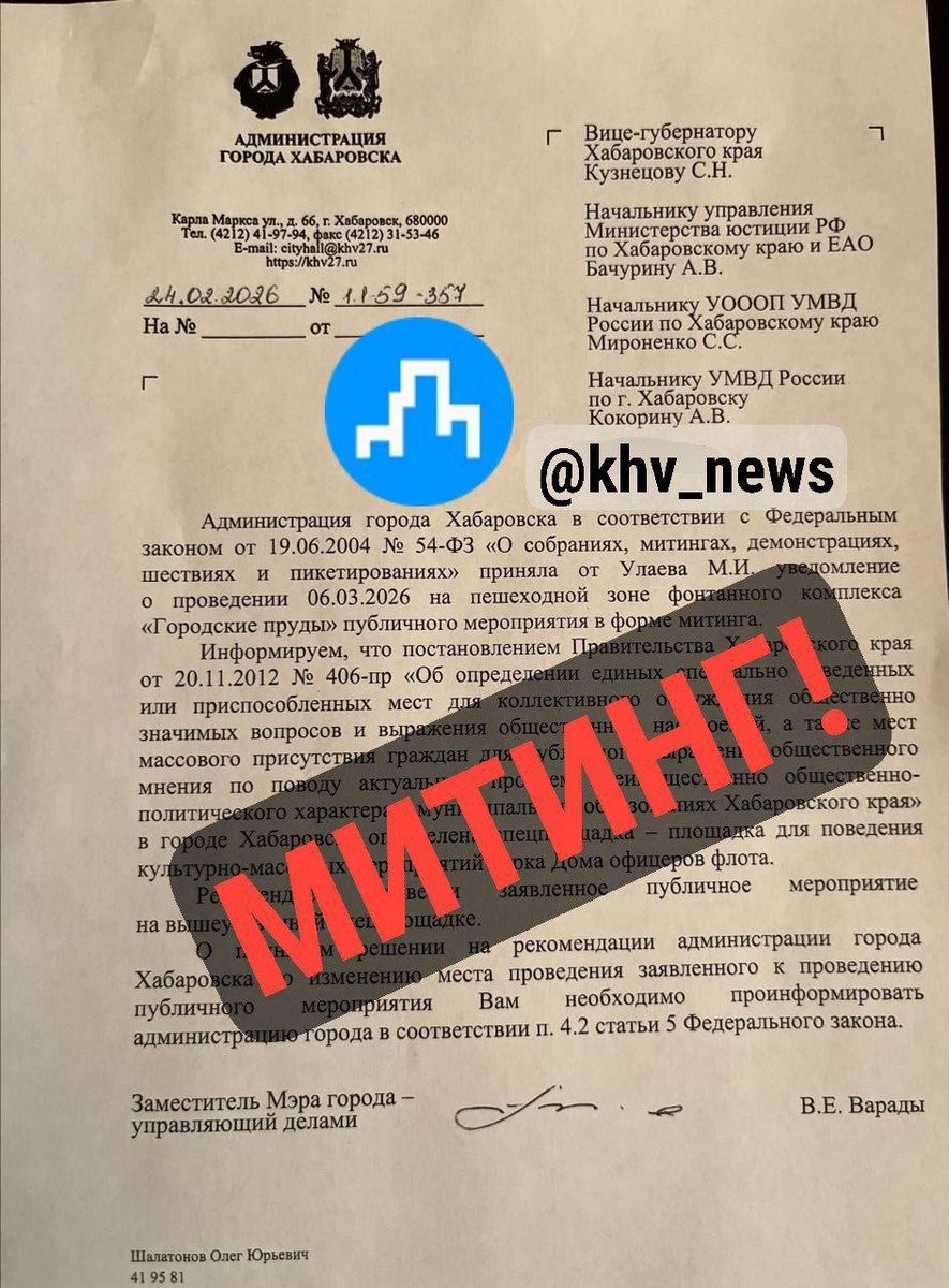 ➤ ПОДРОБНОСТИ... В Хабаровске активисты партии «Рассвет» выступают за соблюдение конституционных прав на информацию без цензуры, протестуя против недавних ограничений Telegram, YouTube и WhatsApp; администрация города согласовала акцию на специальной площадке Пойдете? 👍👎 ➡️ Подписаться - @KHV_NEWS