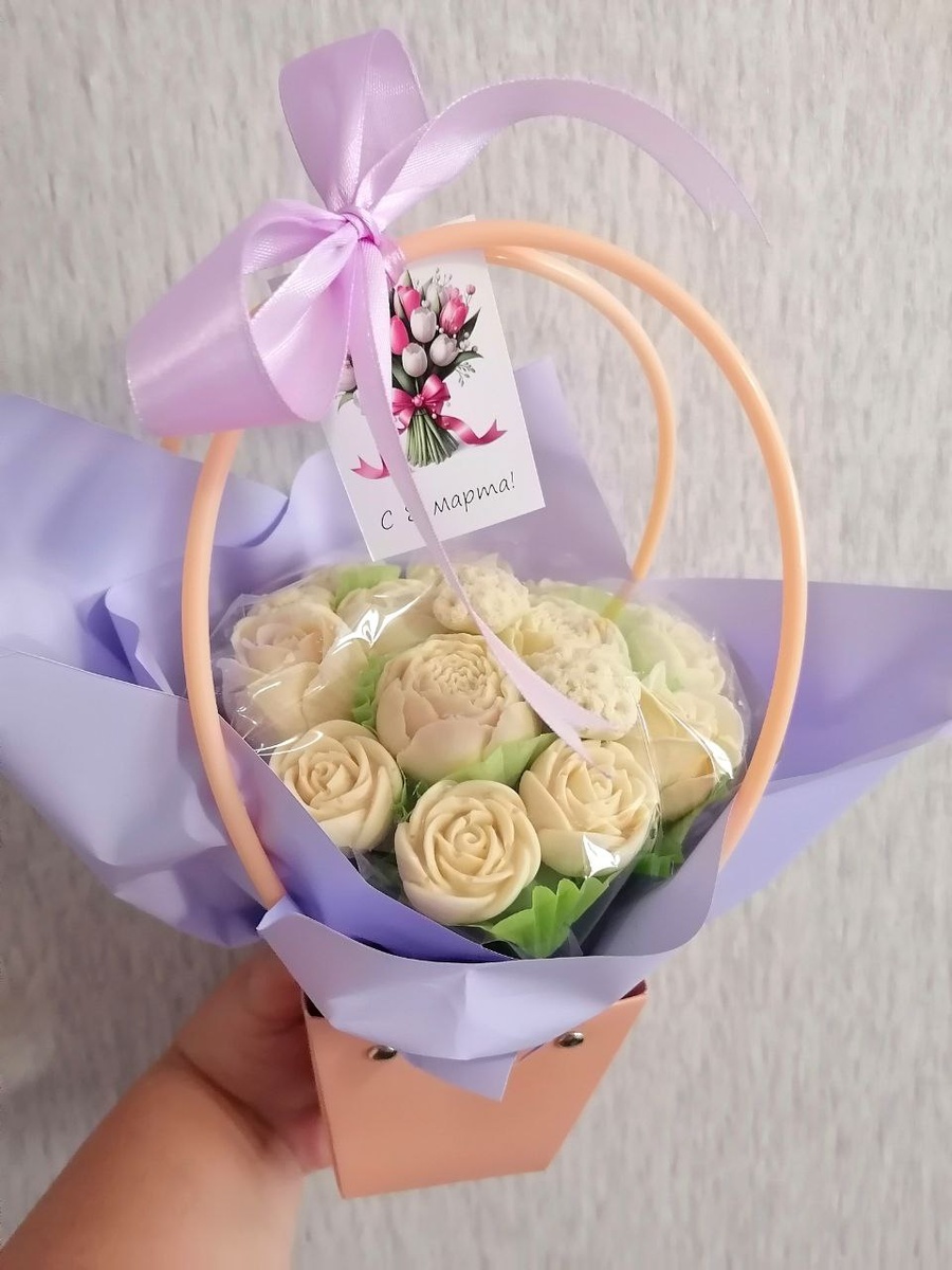). Кстати, если сделаете заказ до 19.00 1го марта, будет скидка 10%! Итак, поехали! Букет цветов из белого шоколада. Количество цветов - 17 шт, в плайм пакете, с мини открыткой. Цена 2900 р.
