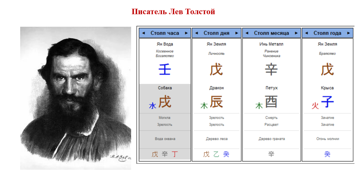 Кстати, дневная доминанта здесь слабая, но устойчивая - имеет сильный корень под ногами и поддержана земной ветвью часа. Братство позволяет выстоять в этот истощающий период. Лев Николаевич не бедствовал - сам из богатой семьи, и стал получать неплохие гонорары.
