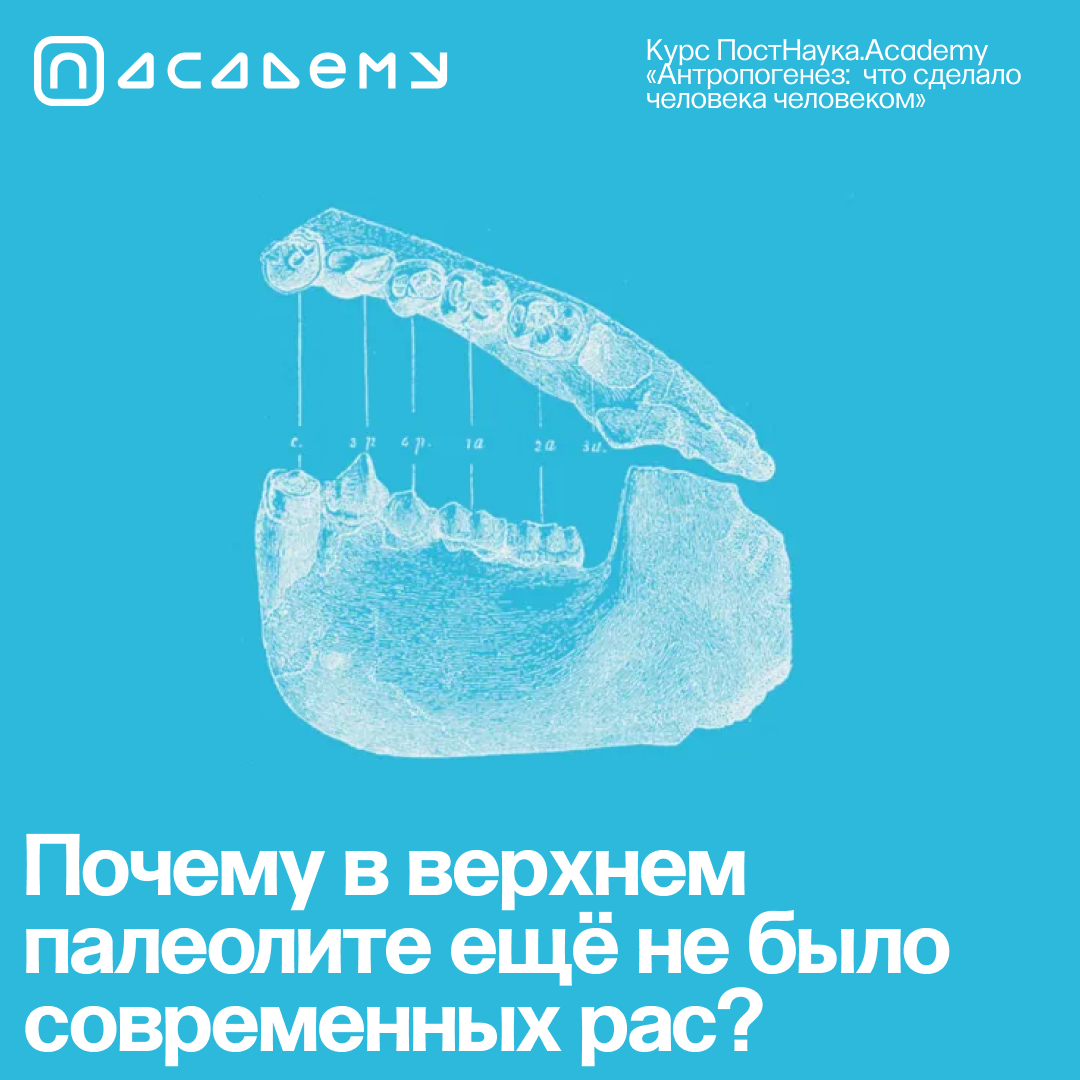 Расы, занимающие большие территории, в верхнем палеолите не могли сформироваться, так как популяции были малочисленны, изолированы. Генетико-автоматические процессы — генный дрейф, частые эффекты «основателя» и «бутылочного горлышка» — в малочисленных группах непрерывно меняли частоты признаков. Смешения с резко отличными популяциями также не способствовали стабильности расовых комплексов. Миграции на огромные расстояния еще больше дестабилизировали морфологические комплексы. С чем связано формирование больших современных рас? Разбираем в одном из уроков курса Академии ПостНауки «Антропогенез»: https://postnauka.org/link/evolution_tg