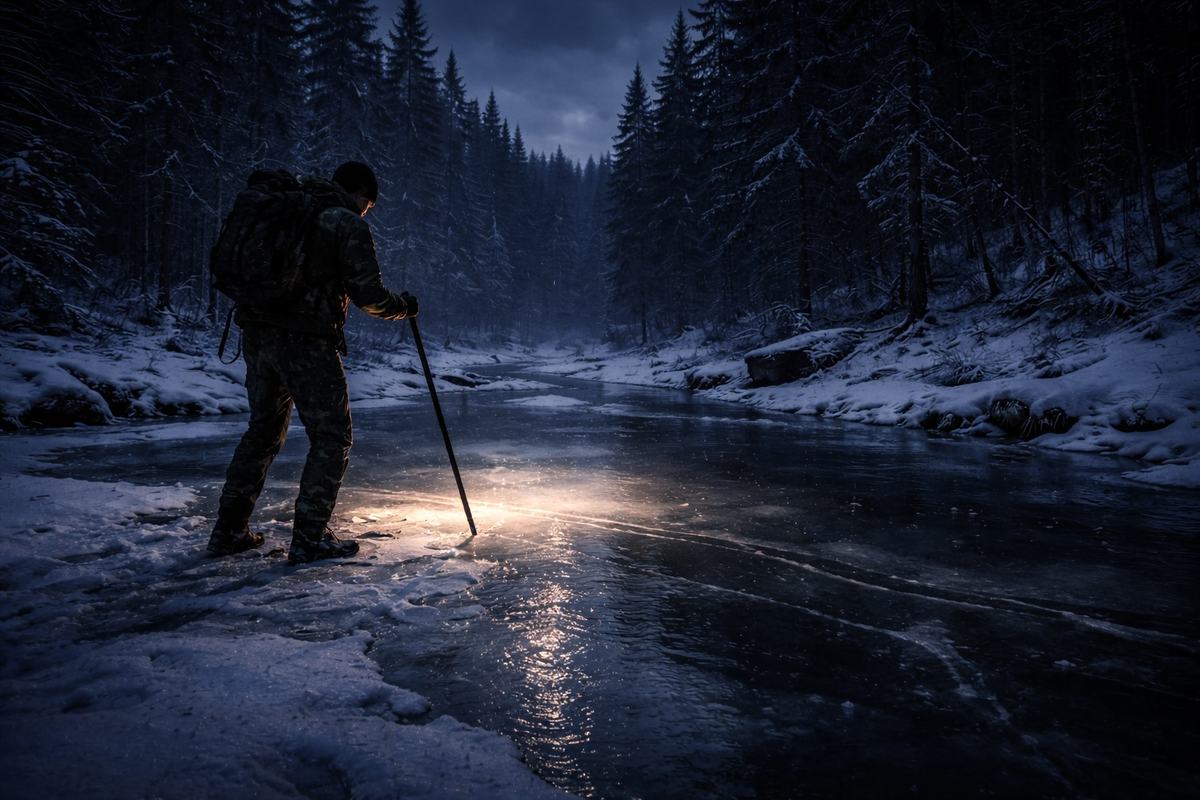 Переходить реку в темноте — плохая идея. Но обход означал лишние десять километров, а мороз крепчал. Ночёвка без укрытия при сорока — решение хуже.