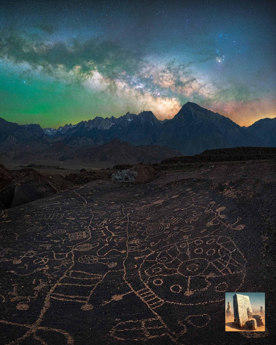 На снимке — звездное небо над живописным местом, называемым Петроглифами Небесной Скалы (Sky Rock Petroglyphs). Эти петроглифы оставили индейцы тысячи лет назад. Расположена Небесная скала недалеко от города Бишоп в штате Калифорния, США. Галактика Млечный путь видна здесь, как на ладони. На заднем плане изображения — виднеются горы Сьерра-Невада. Автор фото: Марчин Заджак (Marcin Zajac) Терра инкогнита | Неизвестная земля