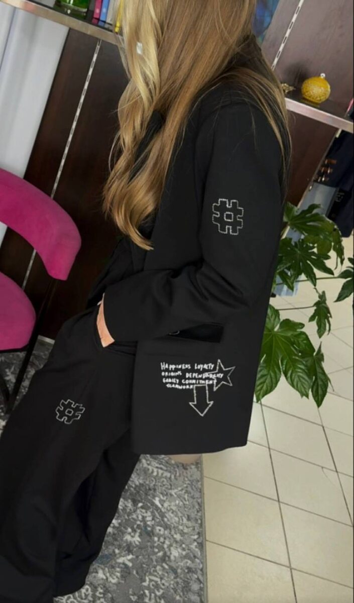 Не скучная классика. Не инфантильный кэжуал. • Брючный костюм из stretch-jersey | стрейч джерси с графичным art декором. 👆 Такие костюмы возглавляют на fashion показах первые ряды. Главное : сочетаемость классического кроя с неожиданными принтами и словами-манифестами: HAPPINESS (СЧАСТЬЕ) · LOYALTY (ПРЕДАННОСТЬ) · DEPENDABILITY (НАДЁЖНОСТЬ) Носим с повседневными кроссовками и лоферами. Поднимаем градус каблуками. 👠 size: S-XL БРОНИРУЙТЕ СВОЙ! пишите консультантам свой размер, получайте подробный обзор и личную скидку: 🔴 Катя беленькая @KatyaWhate 🔴Оля @Belaeva_Olga 🔴Катя темненькая @SEA19800 📍 СКИДКА 10% при оплате наличными. ✔️ подберем размер по вашим меркам ✔️ бесплатная доставка по России ✔️ беспроцентная рассрочка на 3,4,6 месяцев