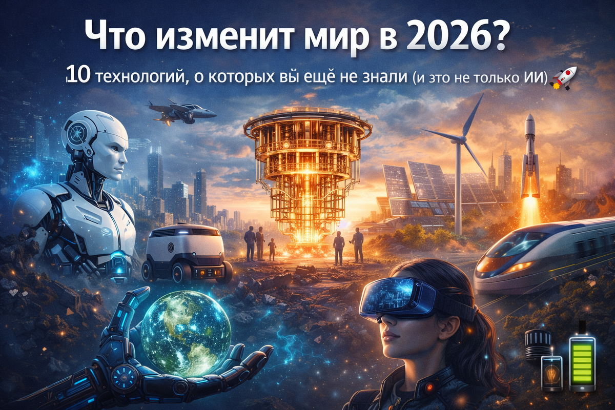Пока все обсуждают ChatGPT, инженеры, физики и биологи тихо делают вещи, которые перевернут нашу жизнь гораздо сильнее. Я собрал для вас 10 главных технологических трендов 2026 года. Без воды, только суть. Поехали! 🔥 🧂 Натрий вместо лития Литий скоро станет дорогим и дефицитным. Ему на смену идет натрий — дешевый, безопасный и экологичный. Китайский CATL уже запустил производство, а в 2026-м такие батареи начнут ставить в электромобили массово. Цены упадут, пожары — тоже. 📄 Бумажная батарея Flint Сингапурский стартап показал на CES 2026 гибкий аккумулятор из цинка и марганца с водным электролитом. Он нетоксичен, не взрывается и разлагается после использования. Представьте: выкинули старый глюкометр, и он через полгода растворился в земле. ⚛️ Карманный атомный реактор Микрореакторы для отдаленных регионов и заводов. Вместо воды — расплавленные соли или жидкие металлы. В США строят Hermes 2, в Китае и России тоже работают над такими. Один контейнер размером с холодильник может питать