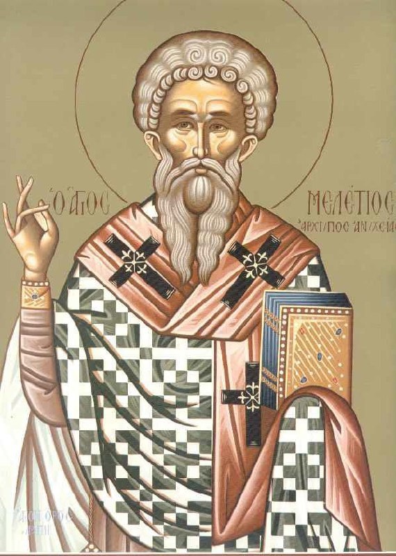 357), а впоследствии был вызван императором Констанцием в Антиохию для защиты от арианской ереси и получил Антиохийскую кафедру. Святой Мелетий весьма ревностно боролся против арианских заблуждений, и по проискам еретиков три раза был изгоняем с кафедры, так как ариане окружали Констанция и склоняли его на свою сторону. Антиохийский Святитель отличался необыкновенной кротостью, неустанно прививал своей пастве добродетели и благие нравы. Святой Мелетий рукоположил во диаконы будущего святителя Василия Великого. Тем же святителем Мелетием был крещен и возрастал при нем и другой величайший светильник Православия – святой Иоанн Златоуст. После Констанция престол занял Юлиан Отступник, и святой был снова изгнан, ему пришлось скрываться в тайных убежищах. Возвращенный императором Иовианом в 363 году, святой Мелетий написал Богословский трактат «Изложение веры», который способствовал обращению к Православию многих ариан. В 380 году, при императоре Феодосии Великом, святитель отправился на