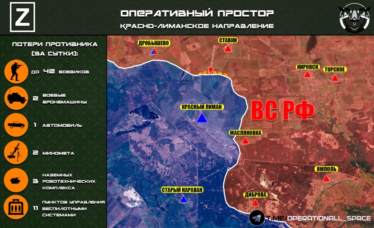 🇷🇺На Красно-Лиманском направлении ВС РФ продолжают наступление с севера на Красный Лиман